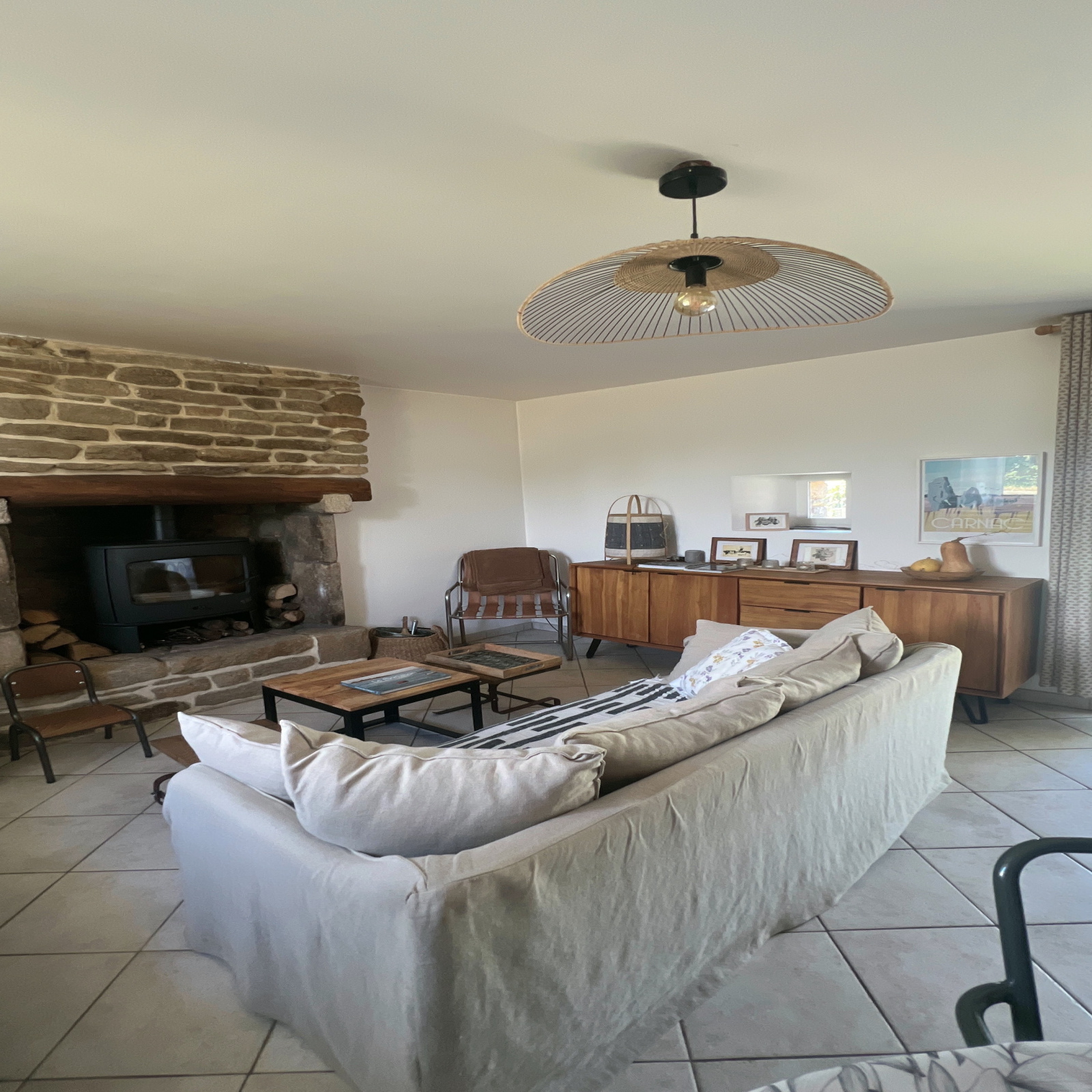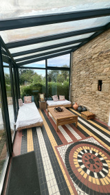 Cette longère orientée sud séduit par son atmosphère chaleureuse et son équilibre entre tradition et confort moderne.